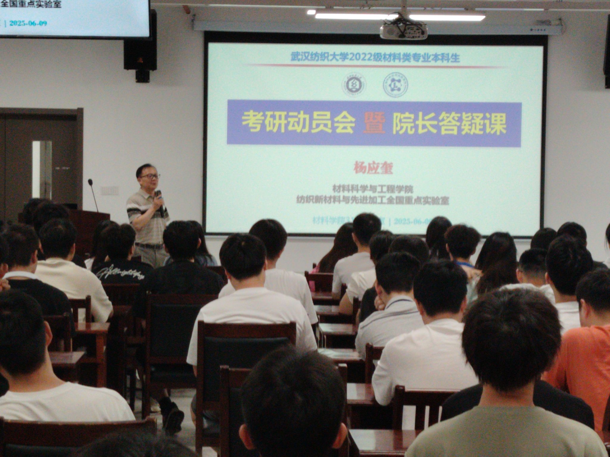 执行院长杨应奎教授首先结合材料专业背景,从国家战略政策为切入点,分析了当前形势下材料专业学生的“就业之路”,他强调,在就业的过程中要提前做好评估就业能力、找准职业定位、捕捉就业信息、对标锁定岗位、注重应聘必要准备、塑造职业形象,鼓励广大毕业生提前规划,抓住机遇,勇于尝试,都能找到称心如意的工作。随后,他分析了当前材料专业考研形势,从学校、学科、地域、团队、导师、学校政策、后期发展等不同维度讲述了如何择校,以及给出了合理化的报考建议。他希望,同学们要尽早明确目标,制定科学合理的复习计划,并坚持不懈地努力。