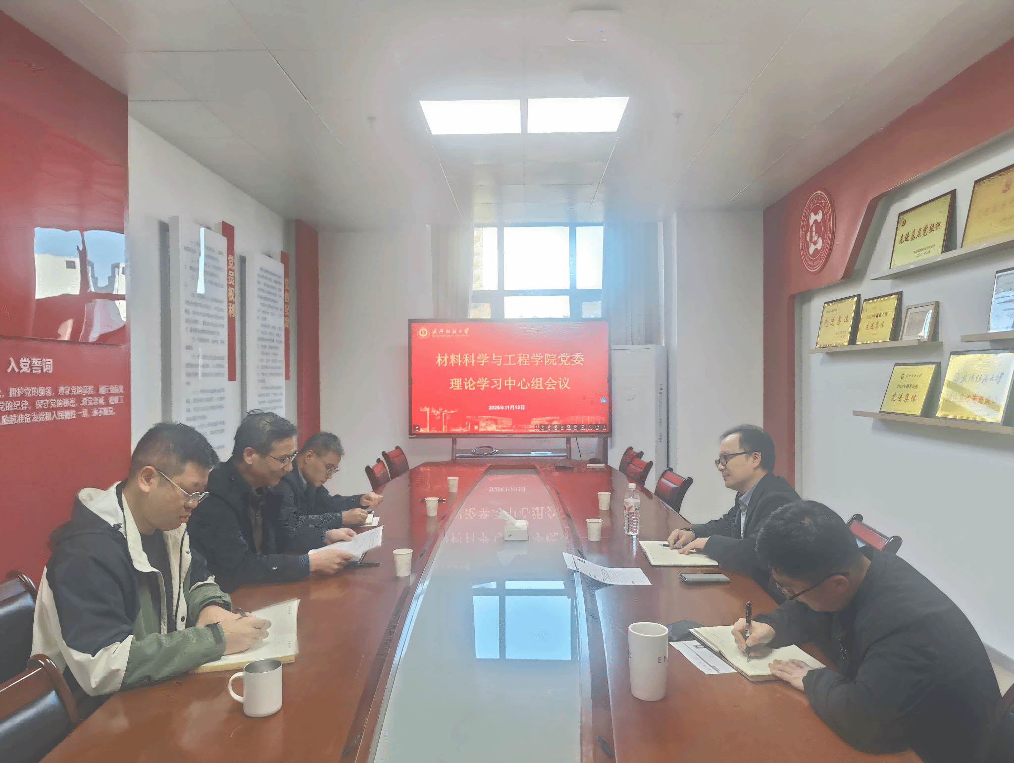 随后,中心组围绕党的二十届四中全会精神展开了系统学习。委员们重点研读了全会对“十四五”时期我国在经济实力、科技实力、综合国力方面跃上新台阶的成就总结,以及“十五五”时期坚持以经济建设为中心、以推动高质量发展为主题的指导思想,并结合材料学科的特色,深入研讨了具体的落实路径。大家明确表示,要对接全会关于“加快高水平科技自立自强”的部署要求,加强新材料领域关键核心技术的攻关力度;要紧扣“激发全民族文化创新创造活力”的要求,将社会主义核心价值观有机融入学生培养全过程;要围绕“加大民生保障力度”的目标,进一步优化就业指导、学业帮扶等服务举措,全方位助力学生的全面发展。