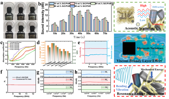 图3:SiC/PAR纳米复合气凝胶的声学性能与电磁波透波性研究