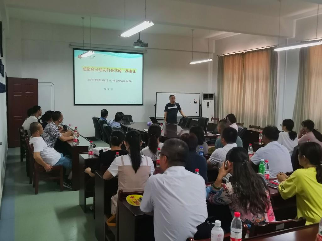 接着,副院长黄乐平围绕学业规划、心理精神、专业介绍、如何了解孩子在校学习情况及安全问题等五个方面和在场的新生家长们分享了如何共同引导学生在大学里进行自我约束,自我管理和自主学习。黄院长建议家长们努力了解自己的孩子,“多建议少命令,与孩子交朋友,争取做到沟通、理解、支持、陪伴”。