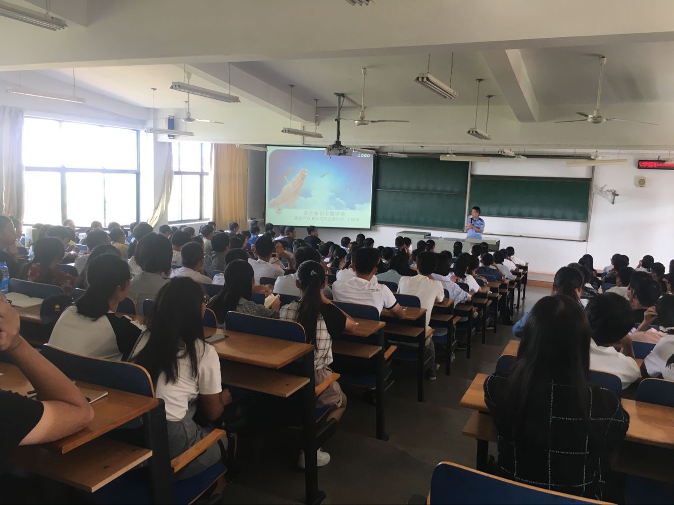 9月28日下午,学院邀请了江夏区庙山派出所的王振国警官,为大家带来安全知识专题讲座。本次讲座中,王警官向新生系统讲解了八个方面的问题,分别是防盗、防骗、防抢、防火、校外租房隐患、交通安全、意外事故以及法制观念。其中,在防火专题中,王警官着重强调了宿舍内禁止使用大功率电器、禁止乱拉电线和劣质充电线,应熟知灭火器的正确用法。在意外事故主题中,王警官用溺水死亡、醉酒死亡、上网时间过长猝死等一个个鲜活的例子再次为同学们敲响了警钟!在讲座的最后,王警官表示,希望新生们能够用实际行动,多了解法制观念方面的知识,成为一名文明、健康、有为、诚信的大学生。