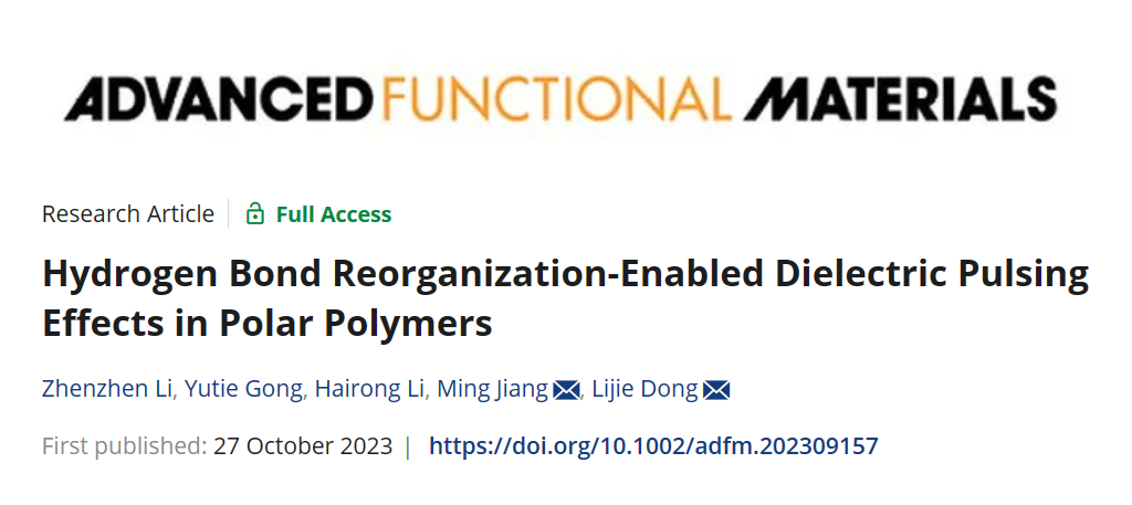 近日,我校williamhill官网姜明副教授团队在热响应介电材料领域获得新进展,继此前以“Relaxation-Induced Significant Room-Temperature Dielectric Pulsing Effects”为题的论文(Adv. Funct. Mater. 2023, 33, 2301009.https://doi.org/10.1002/adfm.202301009)发表后,最近又以“Hydrogen Bond Reorganization-Enabled Dielectric Pulsing Effects in Polar Polymers”为题在《Advanced Functional Materials》上发表了其“姊妹篇”研究工作。这是该团队2023年度在AFM发表的第三篇研究论文。武汉纺织大学为该论文的第一署名单位,williamhill姜明副教授为论文责任通讯作者,williamhill硕士研究生李珍珍、龚钰铁为论文共同第一作者。该项工作得到了国家自然科学基金(51503158)的资助。