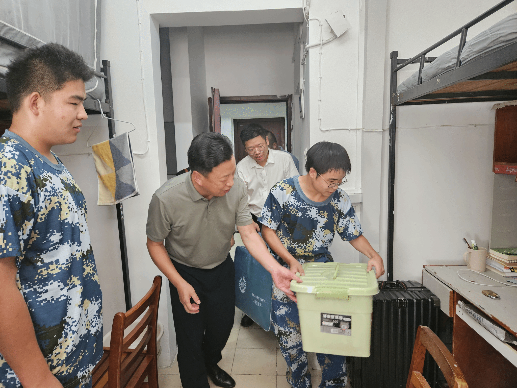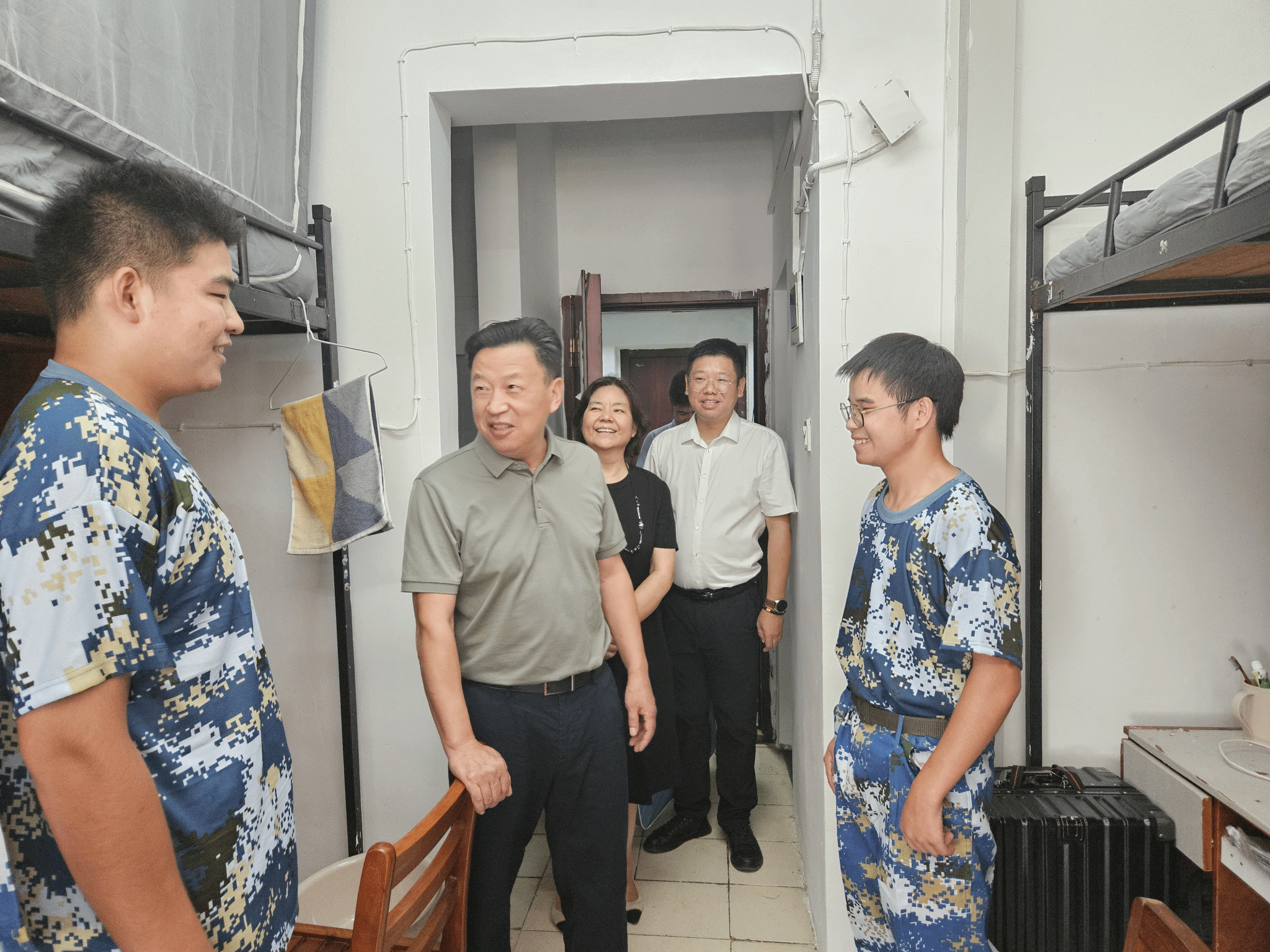 程碧海表示,年轻人初入大学,一是要树立远大的理想,明确自己的目标;二是要持续不断地努力,不受外界的干扰;三是要培养强大的内心,抵御一切的挫折。交谈间,程碧海还鼓励室友们相互帮助、相互扶持,“虽然大家来自五湖四海,但要做好兄弟、好朋友、好知己,未来一起努力学习、做出成绩、报效社会”。