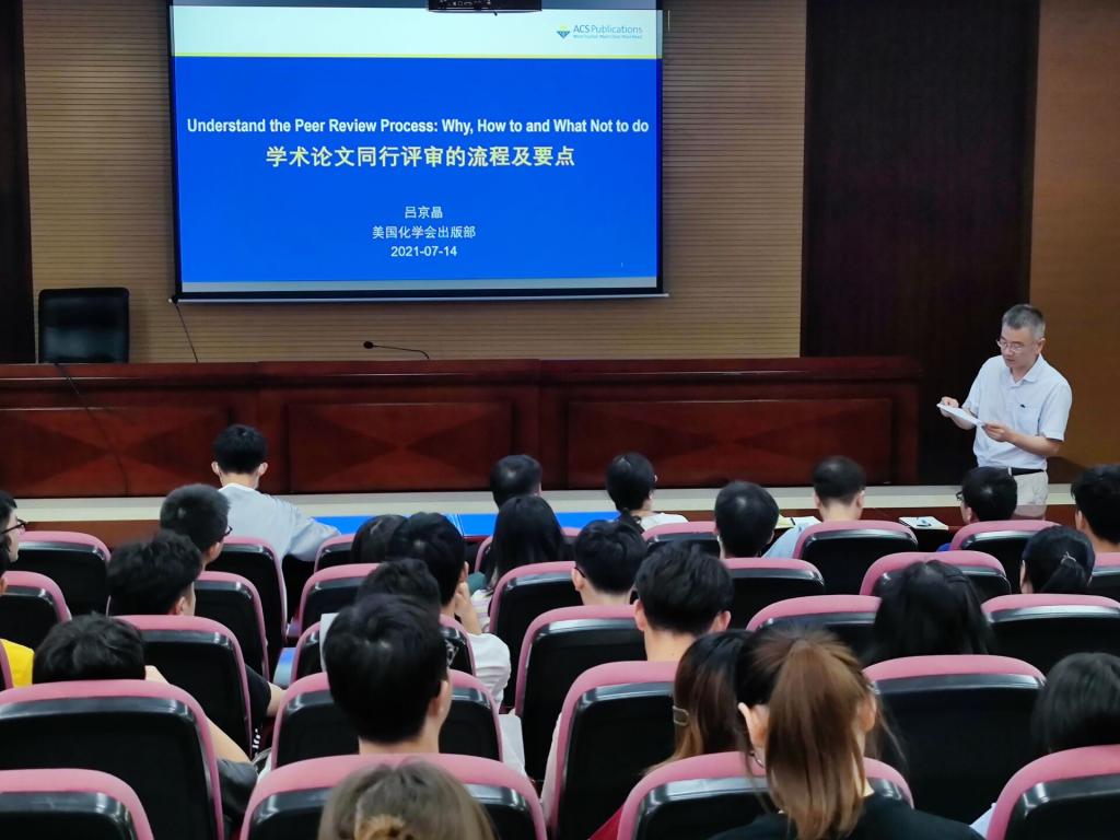 7月14日,应williamhill官网邀请,美国化学会出版部出版部责任编辑贺海丽、编辑服务经理吕京晶来校作了题为“高水平文章的构建”和“学术论文同行评审的流程及要点”两场专题报告。