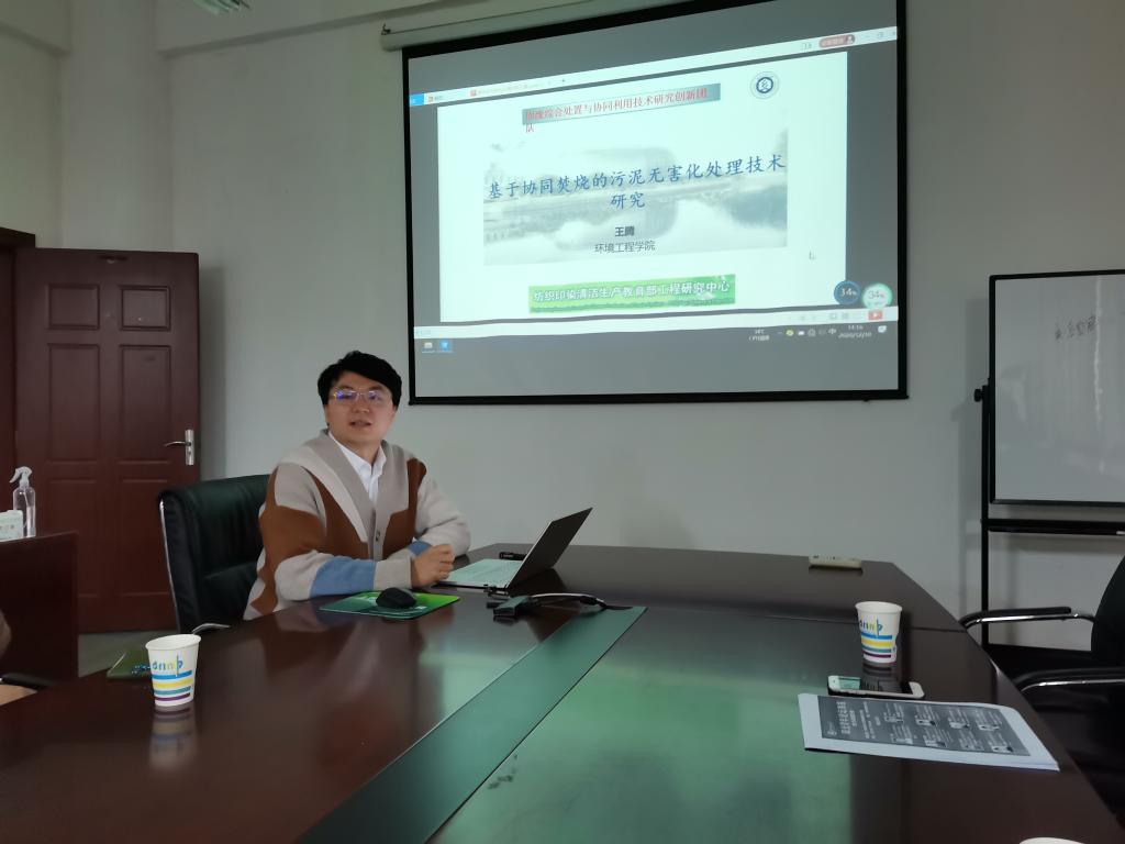 环境学院王腾汇报了基于协同焚烧的污泥无害化处置技术研究