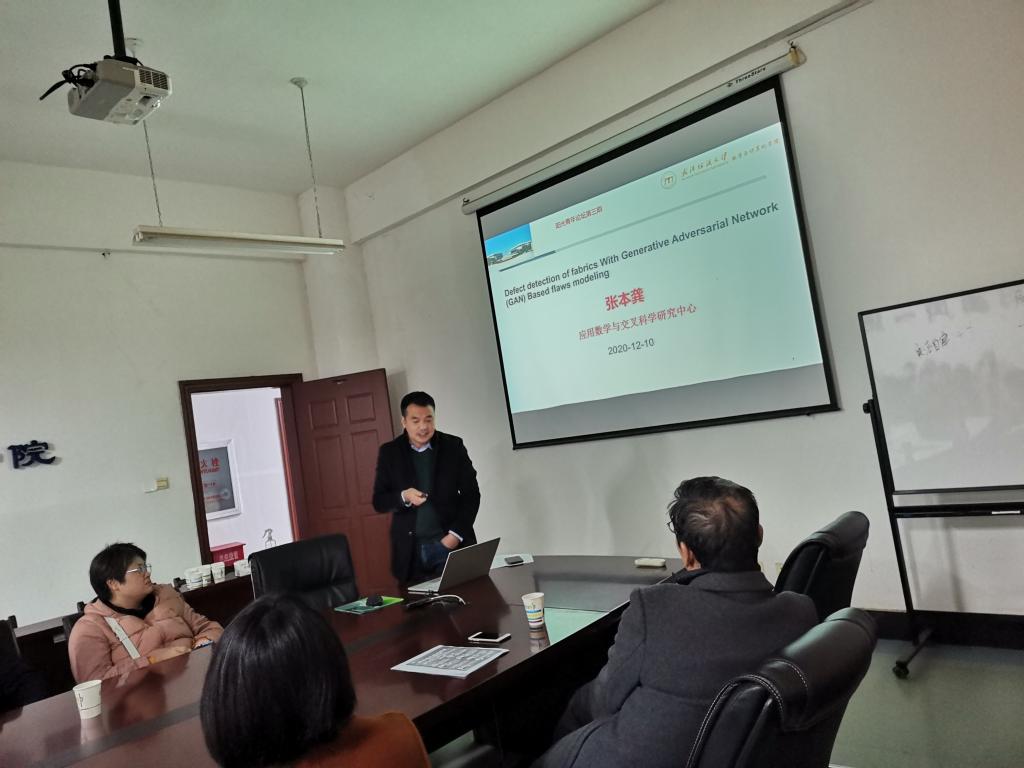 数计学院张本龚汇报了Defect detection of fabrics with Generative Adversarial Network (GAN) Based on flaws modeling