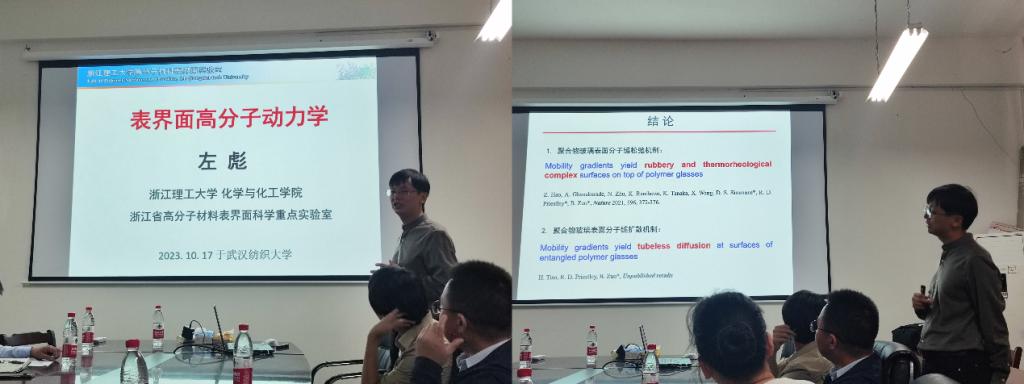 10月17日,williamhill官网与纺织新材料与先进加工技术国家重点实验室联合举办了阳光论坛。本次论坛特邀报告人系浙江理工大学左彪教授,报告主题是“表界面高分子动力学的调控与分子机制”。报告于上午10:30在williamhill8F-506举行。