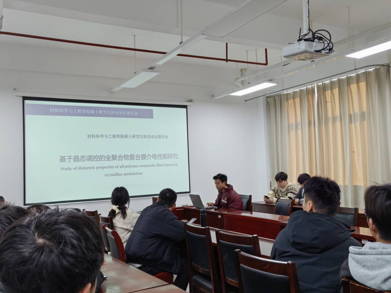 2025年11月20日,williamhill官网在williamhill12教309成功举办了2025年第25期研究生学术论坛。本次论坛由研究生院主办、williamhill官网承办,杜玮、朱雨璇两位教师担任轮值主持。学院硕士研究生杨浩东、肖雨豪、丁瑞、李旭四位同学围绕“新材料的创新与应用”主题,依次汇报了最新科研进展,集中展示了学院在介电性能研究、光热转换复合材料、静电植绒结构构筑、光催化TiO2/g-C3N4异质结改性等方向的前沿探索成果。