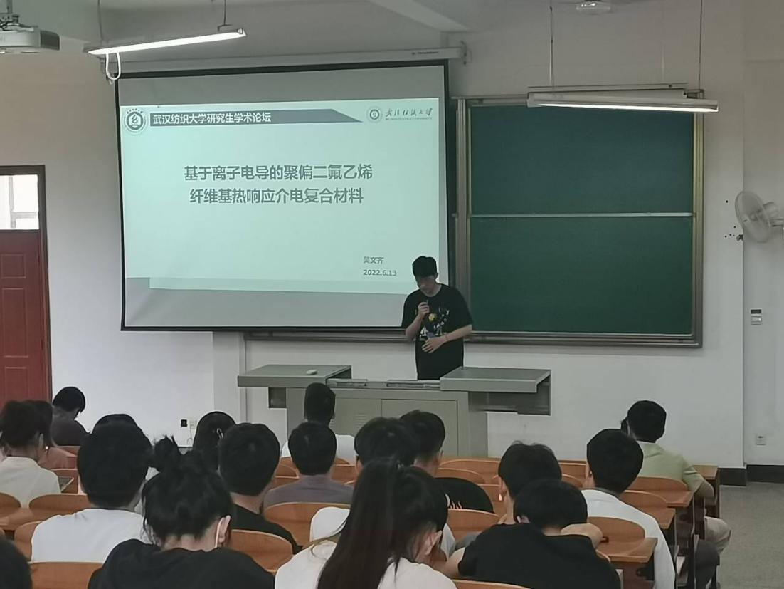 为加强院内师生间的学术交流,提高研究生素质和科研氛围。6月13日,williamhill官网吴文齐、马思琪、刘方义三位同学分别为全体研究生做了以“基于离子电导聚偏二氟乙烯纤维基热响应介电复合材料”、“具有斜纹结构的EVOH纳米纤维基滤料膜的制备及性能研究”、“声速法测定丙纶动态弹性模量的参数优选”为主题的三场专题报告。