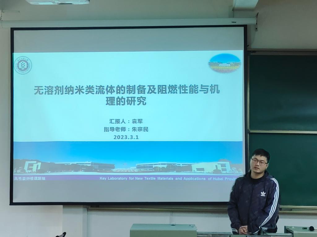 最后,袁军同学为大家介绍到具有流动性好、粘度低、制备过程绿色环保等优点的无溶剂纳米类流体是一种表面功能化的纳米粒子杂化材料。由于其表面的有机分子导电、耐高温,因而可以有效提高高分子材料的阻燃性能。因此袁军同学便对无溶剂纳米类流体的制备及其阻燃性能与机理等相关内容展开了研究。
