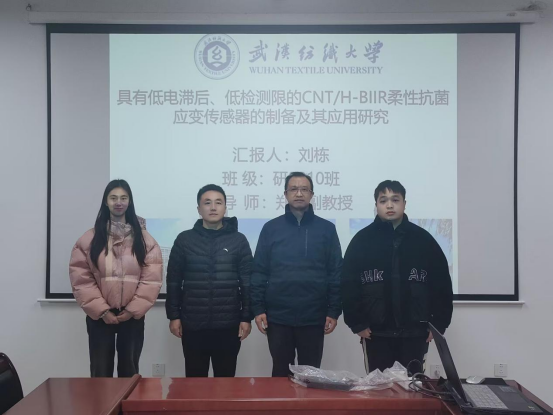 刘栋同学汇报了一种柔性抗菌应变传感器,通过溶胀渗透法在溴化丁基橡胶(H-BIIR)中嵌入碳纳米管(CNT),研发出兼具高灵敏度(检测限低至1.5%应变)、宽检测范围和抗菌功能的柔性传感器。该传感器断裂伸长率达1337%,可应用于人体运动监测与人机交互,有效解决细菌滋生问题。孙晨旭同学汇报了一种高性能锂离子电池复合隔膜,结合介孔二氧化硅(SBA-15)与PVDF-HFP,开发出复合隔膜。其孔隙率提升至72%,吸液率达462%,离子电导率提高4倍(3.4 mS/cm),且在170℃下热收缩率仅为0.8%,显著提升电池安全性与循环稳定性。李吉同学汇报了一种天然填料增强固态电解质,利用天然无机填料(Ht-Li)和有机填料(CMC-Li)协同改性PEO基电解质,使其结晶度降低,电化学窗口扩至4.5V,组装的对称电池过电势低至17mV,全电池循环性能优异,为高安全性固态电池提供新方案。