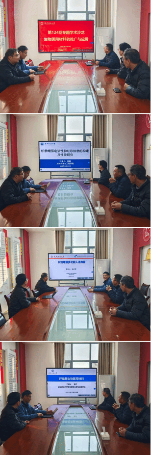 四位专家学者带来了精彩的专题报告:周应山老师就“天然材料在医用领域的应用研讨”进行了深入分析,探讨了天然材料在生物相容性、可降解性等方面的独特优势及其在医疗器械、组织工程等领域的广阔前景。杨红军老师分享了“织物增强多功能人造血管”的研究成果,详细介绍了如何通过织物增强技术提升人造血管的力学性能和生物功能,为心血管疾病治疗提供了新的思路。董齐老师围绕“光聚合组织粘合剂的生物应用”展开阐述,展示了光聚合技术在组织粘合剂开发中的创新应用及其在微创手术和伤口愈合方面的潜力。徐超老师带来了“织物增强电活性神经移植物的构建及性能研究”的报告,探讨了如何利用织物增强和电活性材料构建新型神经移植物,以期在神经损伤修复领域取得突破。本次学术沙龙为学院教师提供了一个高水平的学术交流平台。与会教师围绕生物医用材料的最新研究成果、技术挑战及产业转化等议题展开了热烈讨论,不仅拓宽了学术视野,也为学院在生物医用材料领域的科研合作与创新发展奠定了坚实基础。此次沙龙的成功举办,将进一步推动williamhill官网在生物医用材料领域的研究深度与广度,助力学院在相关前沿领域取得更多突破性成果。