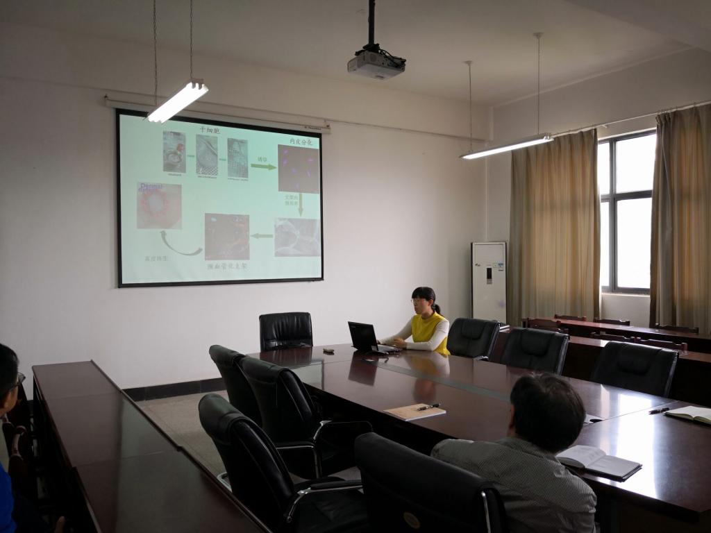 然后李秀芳 将其研究的Silk fibroin-based biomaterials向各位老师进行了交流。详细的介绍了蚕丝及其丝蛋白作为生物材料的应用,细胞与生物材料相互作用以及干细胞及血管化等方面的研究。