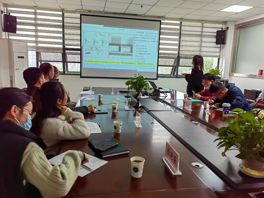会议上,williamhill官网2021级研究生陈青青汇报了关于脱钙骨基功能性骨修复支架的制备及其性能研究,该研究项目提出通过在刚性HAP支架中发泡,使HAP框架下脱钙骨基质/厚朴酚泡沫复合支架柔性与刚性结合,柔性部分有利于细胞黏附和增殖,刚性部分提供力学支撑,从而改善骨组织修复等优点。王运利老师提出脱钙骨基质/厚朴酚泡沫复合支架如何实现在人体中的生物相容性的问题,蒋立泉老师对该研究项目的表征手段提出改善的方法以帮助学生研究的工作尽善尽美。