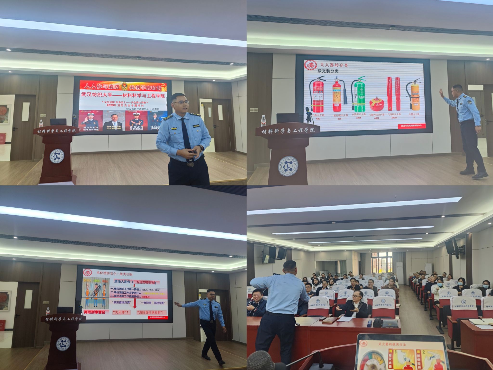 讲座伊始,学院党委副书记魏剑强调,校园安全是教育教学工作的前提和基础,教职工作为学生成长成才的引路人,肩负着维护校园安全、守护学生生命健康的重要职责。掌握必备消防知识、提升应急处置能力,既是对个人和家庭负责,更是践行立德树人使命、保障教育事业高质量发展的必然要求,希望全体教职工以此次讲座为契机,筑牢安全思想防线,切实把消防安全融入日常工作生活。