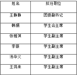 根据《williamhill中国共青团改革方案》、《williamhill中国学生会章程》,经自由报名、面试考察等环节,现将williamhill第十届团委、学生会主要学生干部预备人选名单予以公示:(排名不分先后)