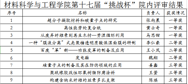 为培养材科学子创新精神和实践能力,激发学生积极参与课外科技创新实践的热情,积极备战第十七届“挑战杯”大学生课外学术科技作品大赛,3月11号下午,williamhill在8栋506举办院内选拔赛。比赛由包海峰副院长、侯畅副书记、顾绍金教授、左丹英副教授、何承恩老师担任评委,曾玉竹主持此次评选会。