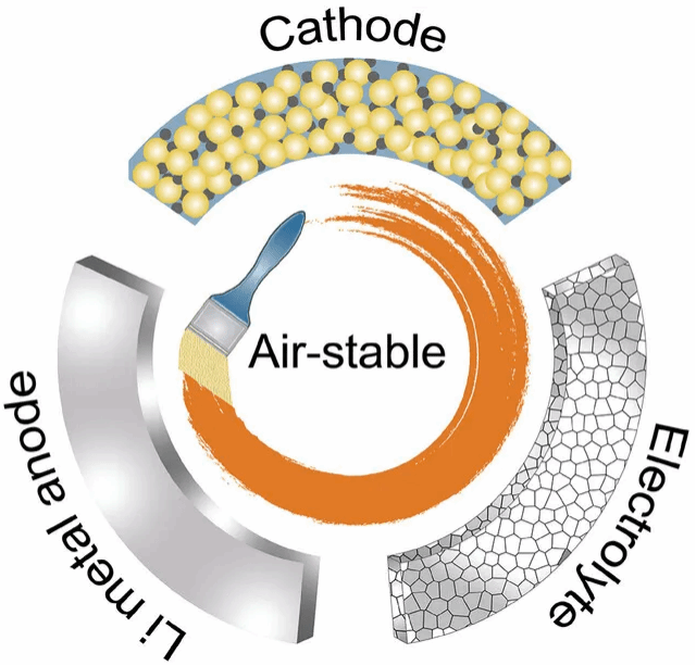 固态锂金属电池(SSLMB)在安全性和理论比能量密度方面具有诸多优势。然而,其主要成分(即锂金属阳极、固态电解质和阴极)在暴露于潮湿空气中时会表现出化学不稳定性,从而导致电池容量低和循环稳定性差。最近的研究表明,具有低比表面能的生物启发疏水材料可以保护电池组件免受潮湿空气的腐蚀。密布在电池组件表面的空气稳定无机材料也能提供保护,从而提高电池组件的储存稳定性,拓宽电池组件的加工条件,最终降低电池组件的加工成本,同时提高电池组件的安全性。