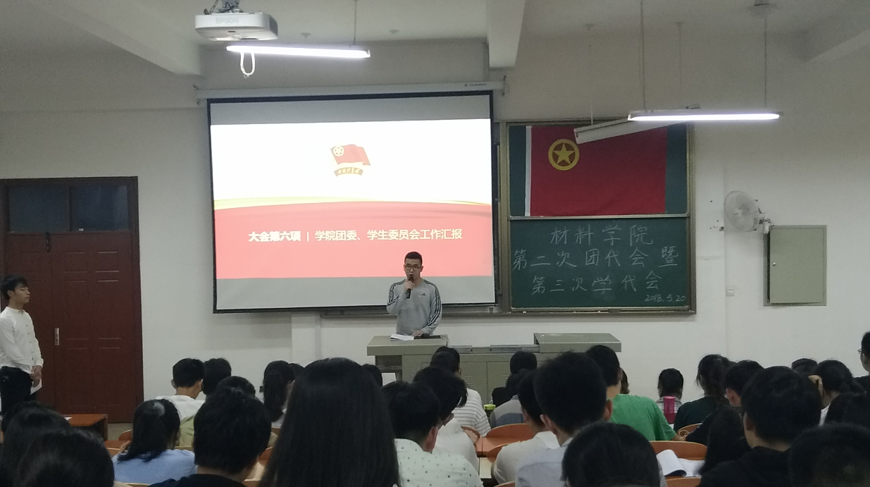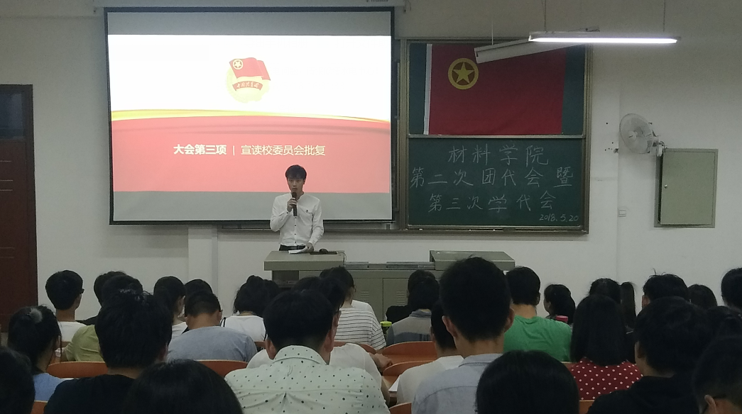 520日晚,williamhill官网第二次团员代表大会暨第三次学生代表大会在8F-T201顺利举行。williamhill团委书记祝捷以及各行政班和团支部推选出的学生代表参加此次大会。