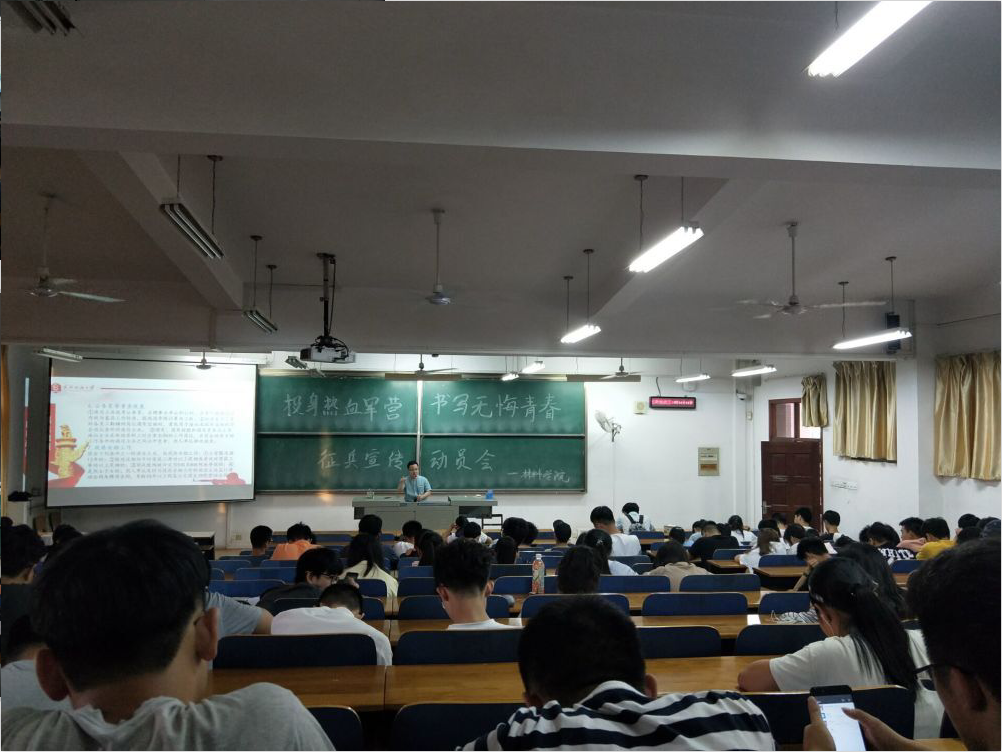 为进一步畅通大学生征兵工作渠道,提高工作效率,扎实开展我院大学生征兵宣传工作,使每一名入伍大学生“入伍安心、服役暖心、退伍放心”。5月6日晚上7点,williamhill召开了2018年大学生征兵工作宣传动员大会。会议全程同步收看了教育部、中央军委国防动员部在京召开的全国大学生征兵网络视频会议。重温了习近平主席给南开大学新入伍大学生回信精神。