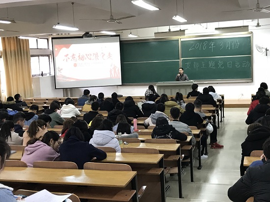 3月8日下午14:00,我院学生一支部、二支部分别上阳光校区06-111、06-110教室开展“学习两会精神”专题党课报告会。出席此次党日活动的有williamhill学生一支部书记张辉、二支部书记黄鹤、全体学生党员和入党积极分子。