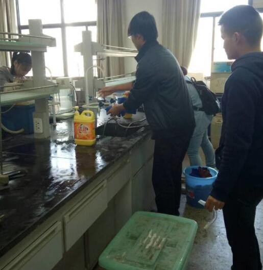 在明确分工后,本次志愿者们分别以八栋一楼和四楼实验室为清理对象。在本次志愿活动中,80余名志愿者积极行动,发扬“不怕脏,不怕累”的精神。虽然他们课程繁多,但还是积极通过课余时间参加志愿活动。在清洁活动中,志愿者们的身影活跃在实验室每一个角落。他们有的默默地擦桌子,有的洗试管,有的拖地……由开始的凌乱不堪,到后来的干净整洁,这些都是他们通过团结努力打做到的。这项活动获得了学院老师的一致好评,感谢志愿者们的辛勤劳动。