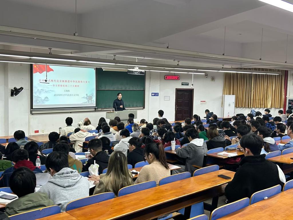 党课最后,王海燕教授号召广大青年,要认真学习领会党的二十大精神,紧密团结在以习近平同志为核心的党中央周围,高举中国特色社会主义伟大旗帜,全面贯彻习近平新时代中国特色社会主义思想,牢记空谈误国、实干兴邦,坚定信心、同心同德,埋头苦干、奋勇前进,为全面建设社会主义现代化国家、全面推进中华民族伟大复兴而团结奋斗!