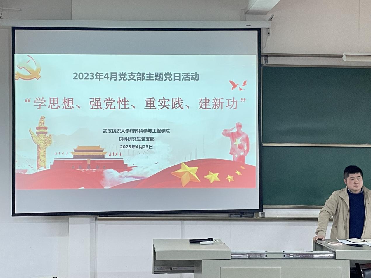 深入开展学习贯彻习近平新时代中国特色社会主义思想主题教育,强化研究生党性修养,williamhill官网材科研究生党支部于2023年4月23日下午在8F-T101教室举办4月主题党日活动,支部书记为支部全体党员、积极分子带来题为《学思想、强党性、重实践、建新功》的党课。