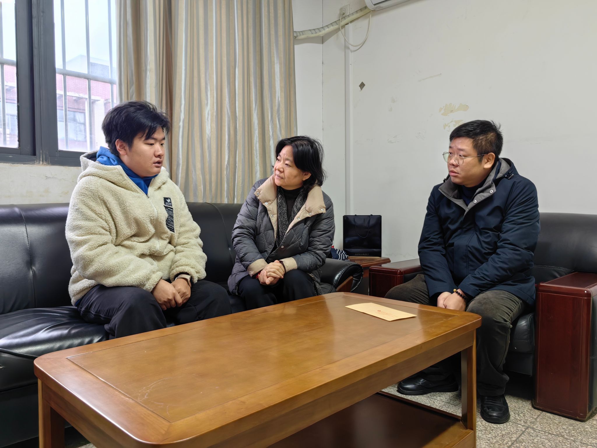 陈书记将慰问金送给吕鑫杰同志并与其进行了亲切交谈,深入了解了学生的学习、生活和家庭情况,鼓励他要坚定信念,勇敢面对困难,努力学习,为实现自己的人生目标而奋斗。同时他希望吕鑫杰同志要持续发挥好党员的先锋模范作用,为同学们树立榜样。吕鑫杰同志表示非常感谢学校的关爱和帮助,作为毕业生也在积极的找工作,他将以更加饱满的热情投入到学习和工作中,不辜负学校的期望和信任。