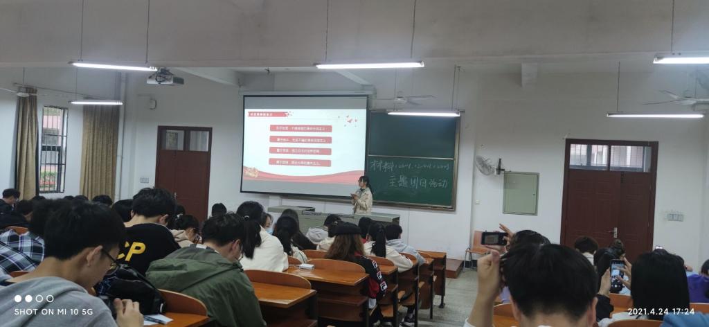 为庆祝建党100周年,加强学生的爱国爱党意识,弘扬党的精神,引导学生领悟中国共产党百年奋斗光辉历程和中国共产党为人民谋幸福的初心,提升政治素养和传承红色基因,williamhill各班级于4月24日晚在8栋教学楼开展了“学党史知党情跟党走”主题班会。会议由各班班长和团支书主持。