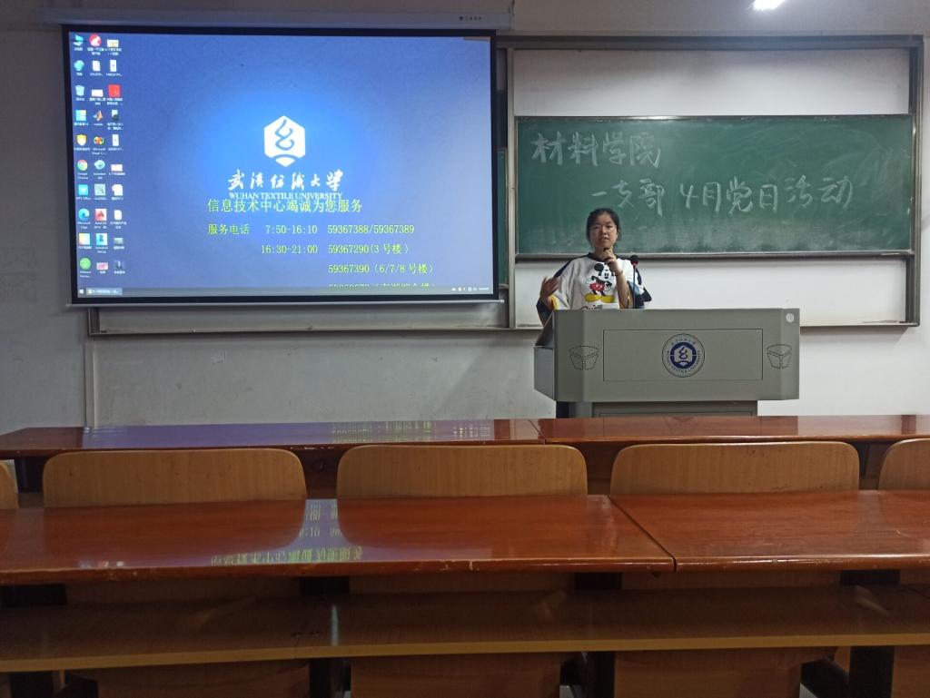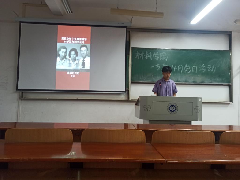 4月17日晚,学院学生党支部开展了4月主题党日活动,会上播放了党史学习教育视频——《清明忆先烈(3)》,讲述了李碧涛老人回忆中国年龄最小的烈士——小萝卜头(原名宋振中)的狱中故事,与会人员很受感触。学生二支部书记毛成兴老师以小萝卜头对自由的渴望和对知识的渴求,鼓励大家不断学习党史,从历史中汲取力量,努力成为堪当民族复兴重任的时代新人,让青春在为祖国、为民族、为人民、为人类的不懈奋斗中绽放绚丽之花。接着,支部党员和入党积极分子结合自身经历做了分享,学生一支部书记曾玉竹老师动员同学们以庆祝建党100周年为契机,充分学起来、讲起来、做起来;利用好“学习强国”等平台、在线课程等资源,继续自学党史相关内容。主题学习结束后,参会同志还分享了参加主题党日活动的收获,他们认为每个人都应该学党史,悟初心,感恩先辈,牢记新时代党赋予我们青年的使命和责任。
