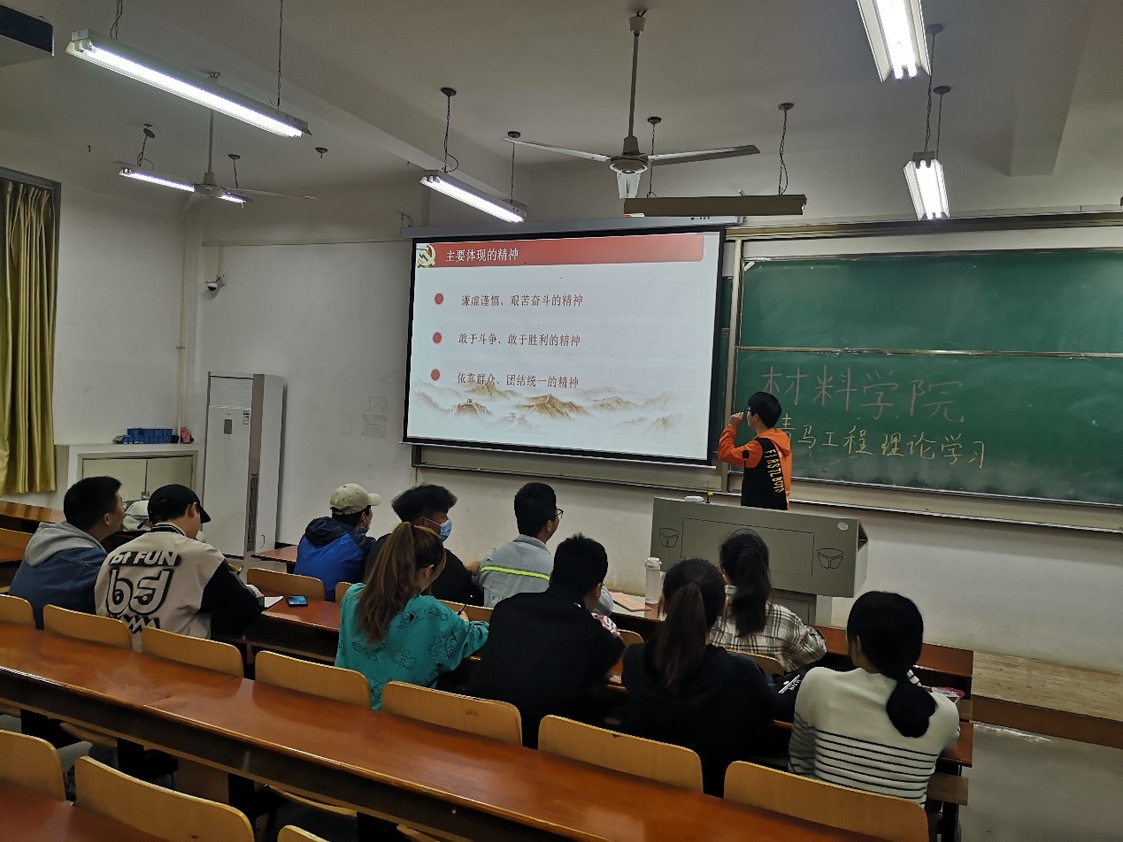 学院“青马班”学员精心准备学习资料,于4月17日晚主题党日活动结束后,继续开展党史理论学习。会议从红色革命精神这个大主题出发,分别由胡义龙、裴凌威、杨珩、刘从杨、姜鑫、张枭和张力凡7名同志分享了红船精神、井冈山精神、苏区精神、长征精神、延安精神、沂蒙精神和西柏坡精神。一个个生动的红色经典故事,传递出丰富的精神内涵,让从未经历过残酷战争的同学们了解在战火纷飞的革命战争年代,革命先辈们用流血牺牲铸造成的红色革命精神。作为时代新人的大学生,更应该勇敢挑起时代的重担,积极响应国家的号召,将红色革命精神化为动力,牢记先辈遗德,担当肩上使命,不畏艰辛,自强不息,成为中华民族伟大复兴路上的时代先锋!会后,青马班学员的学习资料通过下班党员传到各班级群,成为各班级开展主题班会的重要学习资料。