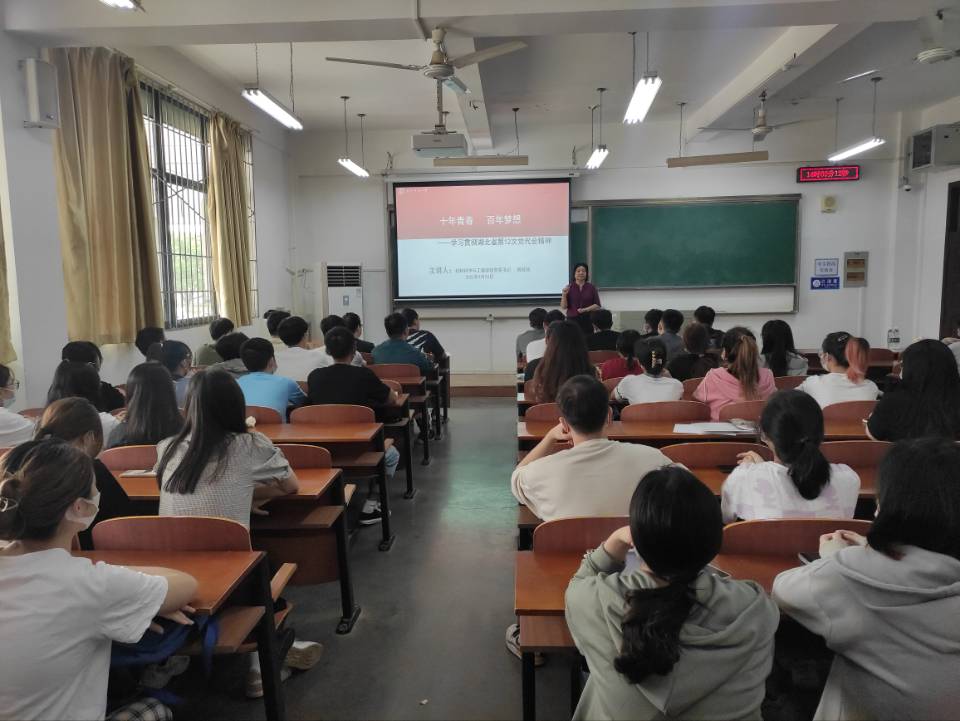 9月24日下午,williamhill党委书记陈桂枝以“十年青春 百年梦想”为题,给学院全体本科生党员上了一次生动的党课,宣讲了湖北省第十二次党代会精神。学生党支部书记、辅导员毛成兴和全体本科生党员参加了本次学习。