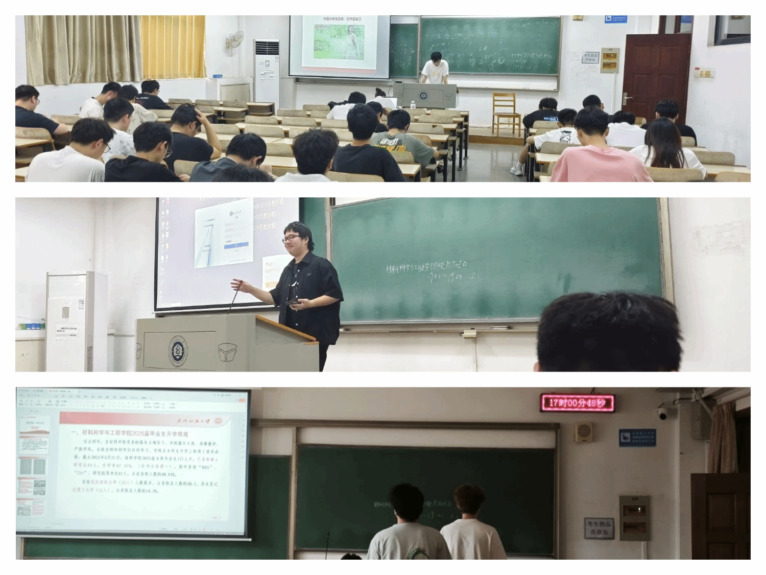随后,辅导员围绕朋辈领航、诚信应考、文明寝室三大主题,为学子们指引方向、筑牢底线、营造温馨环境。学院聚焦2025届毕业生升学就业成果,展现人才培养实效。过去四年,在学院统筹推动下,升学与就业齐头并进。升学方面,177名毕业生超五成深造,“985”“211”等院校录取率可观,“推免 + 考研”双上岸案例频出;就业上,超七成学子顺利就业,中石化、TC亨昇等名企中有材料学子身影,剑振鹏、王树勋、朱爽等就业达人分享求职心得,激励低年级同学早规划、勇逐梦。考试周临近,学院着重强调诚信应考。从“诚信是公平考试基石”切入,阐明考试作弊入刑后果,结合《中华人民共和国教育法》《williamhill中国学生考试违规处理办法》,亮明“零容忍”态度;列举往届违规案例敲响警钟,同时传授心理调适法与备考建议,帮学生以积极心态、科学方法应考,缓解压力焦虑。文明寝室建设环节,学院从安全、卫生、互助、沟通多维度倡议。安全上,禁违规电器、私拉电线,做好防火防盗;卫生上,定期清扫、分类垃圾,营造整洁空间;互助中,室友携手奋进;沟通时,换位思考、化解矛盾,让寝室成“心灵港湾” ,号召学生以寝室为家,守护文明“小阵地”,共建学院文明“大环境” 。