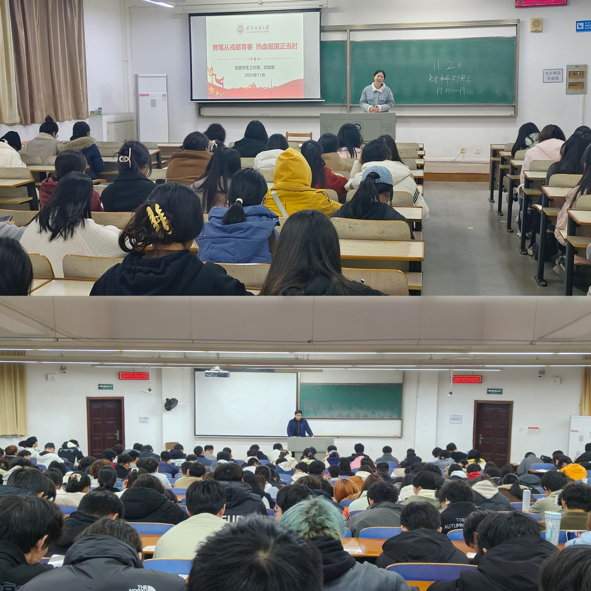 为鼓励材料学子携笔从戎,积极投身国防建设,11月23日,williamhill通过开展主题教育班会、入伍政策宣讲课、退役大学生士兵朋辈交流系列活动,切实推进征兵工作“三个一”宣传动员。本次活动由班主任、辅导员主持,面向学院各年级学生,激发了学生的参军报国热情。