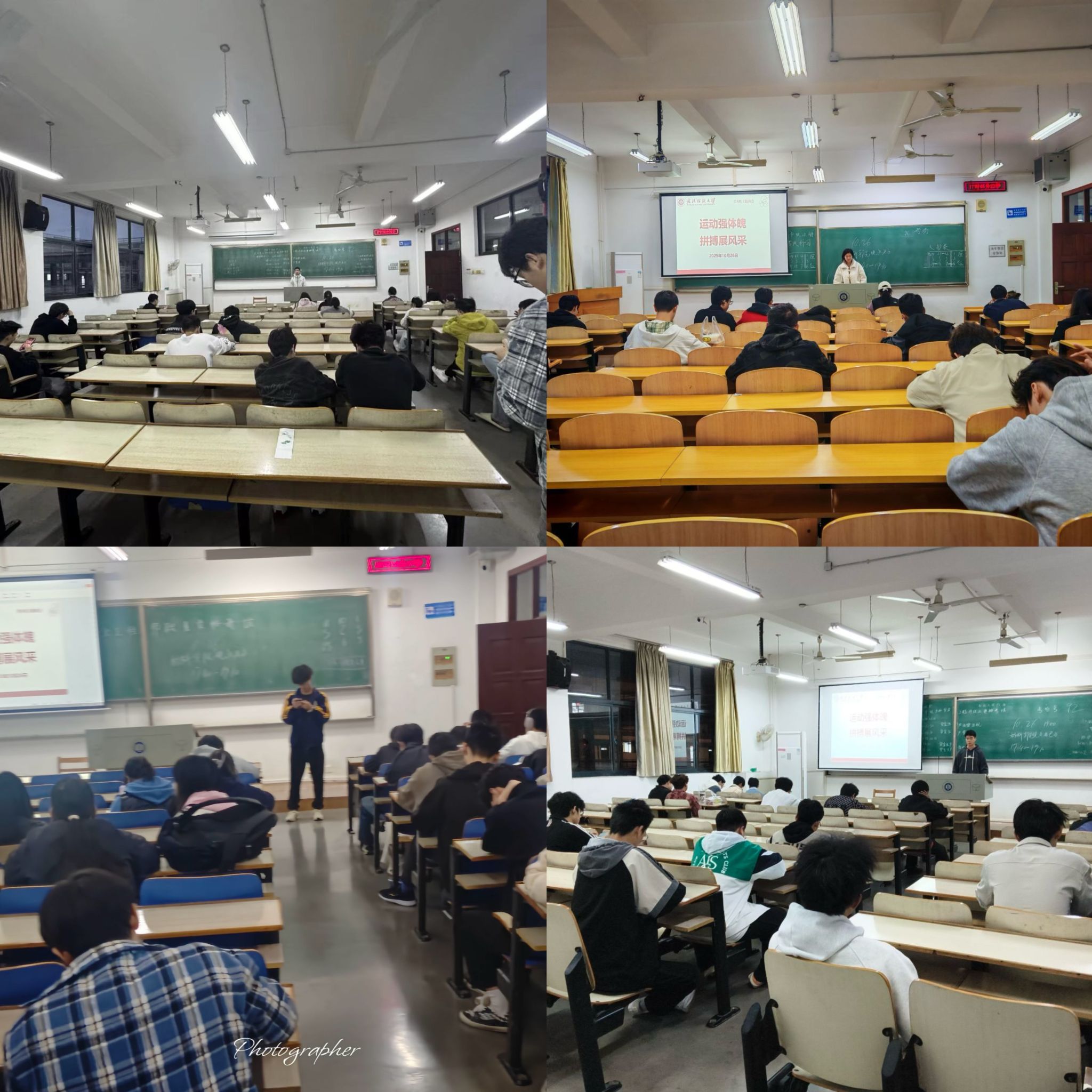 班主任们介绍了学校近期的体育活动安排(包括校运会、太极拳比赛、体适能竞赛等),鼓励同学们积极参与,在赛事中展现青春风貌;同时提醒了体育活动中的安全事项(如提前热身、合理着装、遵守规则等),确保同学们安全、愉快地参与运动。
