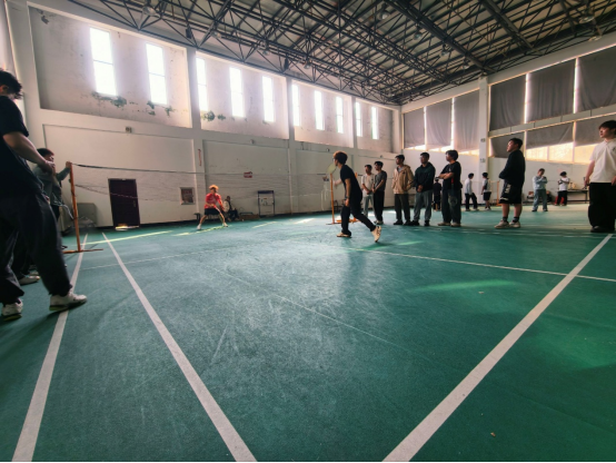 比赛设有男子单打、女子单打项目,采用淘汰赛制。赛前,研究生会工作人员已完成场地布置、规则说明与赛程安排,确保赛事有序进行。选手们提前到场热身,相互交流,赛场气氛轻松而热烈。