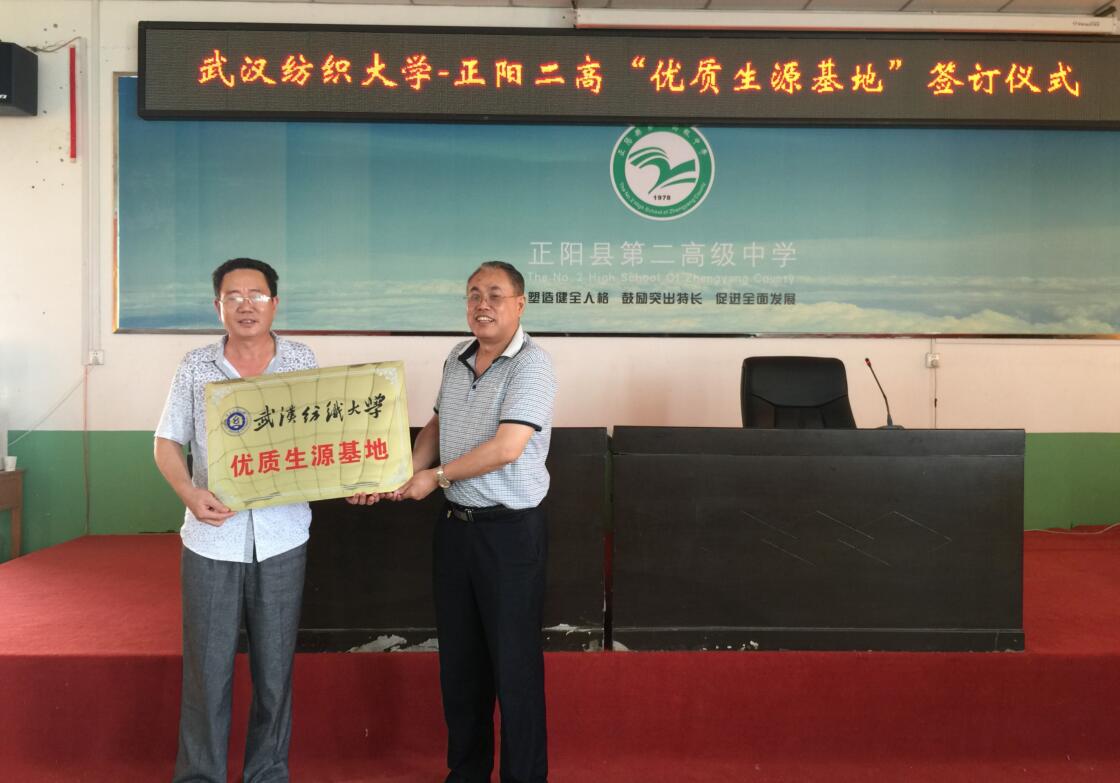 6月22日,williamhill官网党委书记毛长文、党委副书记秦梦、材科系主任方东和办公室主任马绪亮一行4人来到河南驻马店重点高中正阳二高,双方签订了williamhill中国优质生源基地协议,并就2016年我校在河南招生政策相关情况做了详细交流。正阳二高党委杨书记、张校长、李副校长和教导处主任以及教师代表参加了本次仪式。