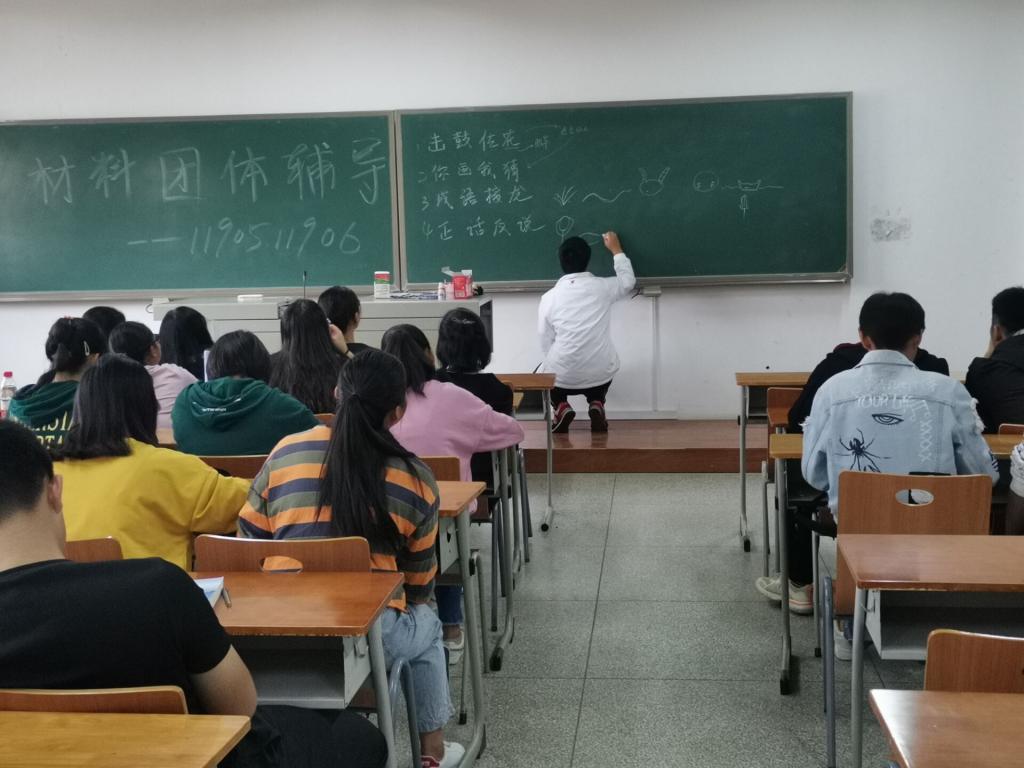 本次团体心理辅导培训活动分为五个部分:击鼓传花、你画我猜、成语接龙、装盲人和正话反说等。这些游戏不但本身妙趣横生,还极大的考验了同学之间配合程度,很好地体现了本次活动的初衷和目的。并且在组织时还准备了很多小奖品来奖励在游戏中默契配合的每组同学,所以在活动现场同学们都很积极地参与游戏,一组组的同学精彩默契的配合引得现场笑声、掌声不断。