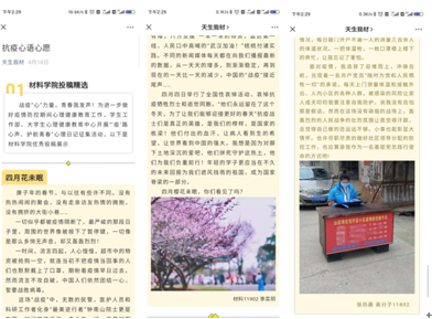 系列活动中,学院积极响应学工部、大学生心理健康教育中心号召,通过williamhill微信公众号“天生我材”开展“‘疫’路心声、护航青春”心理日记征集活动。大家通过心理日记,分享交流各自的战“疫”故事,探索对生命和人生的思考,寄托材料学子对祖国和人民的热爱,对父母家人的深情,和对自己全新的期许。
