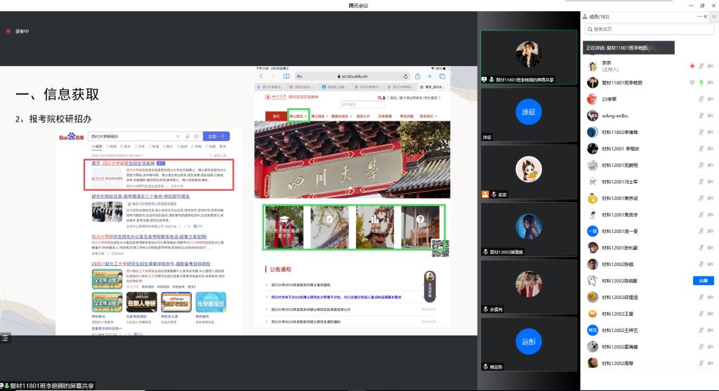 高分子11801班的李翠,则以自己做班长的四年经历分享了班级建设经验,尤其学风建设。今年高分子11801班考研上岸率64%以上,全院甚至全校最高,取得了优异的成绩,与良好的班风学风密不可分。
