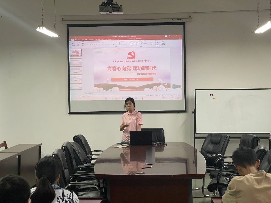 曾玉竹老师以习近平总书记在清华大学演讲中提出的“立大志、明大德、成大才、担大任”为题进行展开阐述,积极引导同学们争做新时代的中国好青年,希望同学们能够在接下来的学习工作之间相互裨益,提升自我。曾老师强调,作为当代青年大学生,我们肩负时代复兴的重任,应当树立远大志向,面对困难时敢于迎难而上,坚定地把正确的政治信念和为人民服务的精神追求内化于心、外化于行,真正做到学而思、学而信、学而行;青年一代也应该把握时代的机遇,在这百年未有之大变局中实现“小我”与“大我”的有机结合,将个人理想融入建设社会主义强国实践之中,不负韶华。