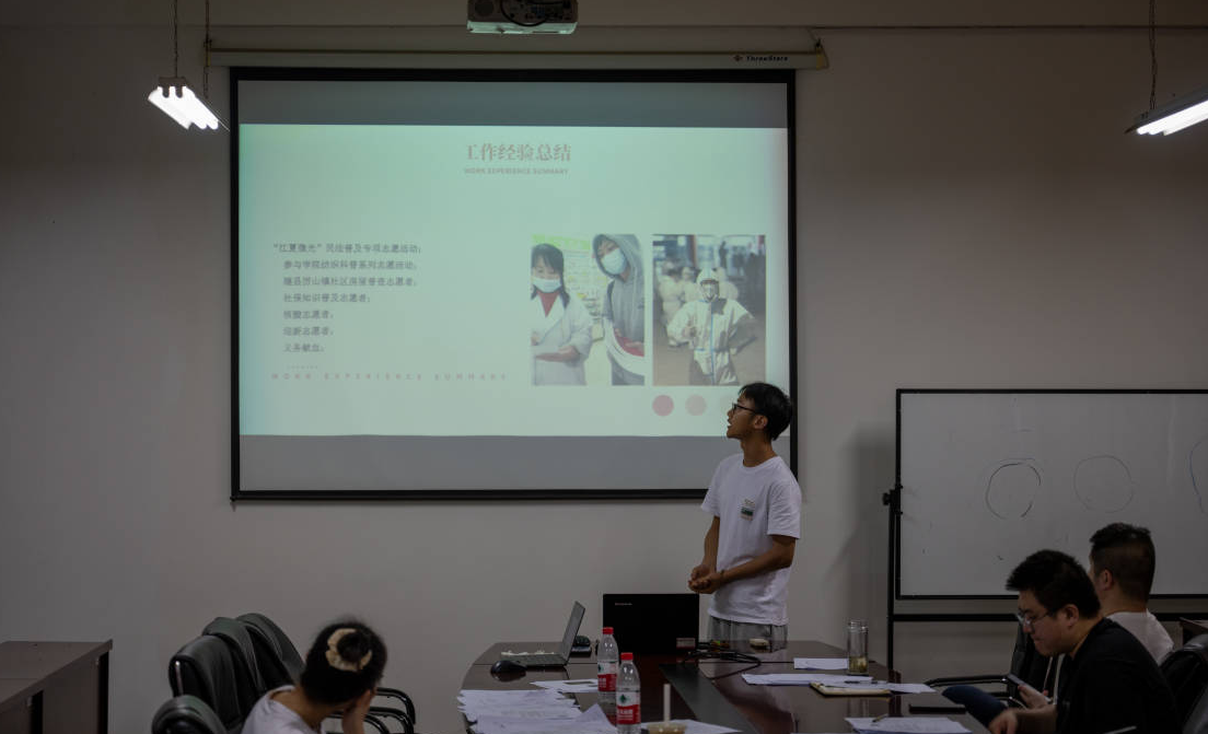 本次答辩每个人展示时长为3分钟,答辩内容设计个人思想,学生工作,学生成绩,荣誉专项四个方面,申请荣誉共覆盖到12个项目。在同学答辩展示结束时,各评委会给对其个人的表现进行打分,做出对应的评价并给出建议。