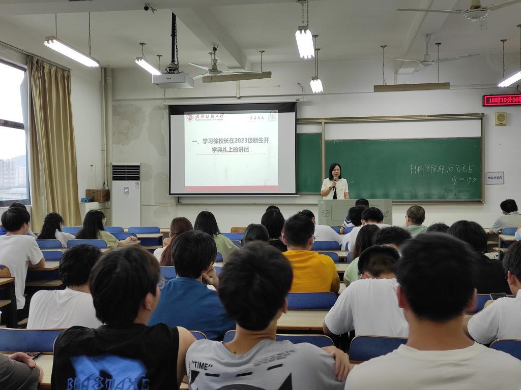 主题班会上,张部长与学生共同学习了徐校长在2023级新生开学典礼上的讲话——《踔厉奋发 勇毅前行 向着新的目标启航》,并与学生现场互动,邀请学生畅谈对徐校长寄语新生的20个关键词的理解和看法。学生踊跃发言,一位同学就“格物致知,知行合一,致良知”分享了自己的感悟,要在生活中追求真理,并指导行动,做到“知行合一”,并用我们的良知去指导知和行,方可致远。另一位同学则非常喜欢“上善若水”,认为做人要像“水”一样,“润物细无声”,泽被万物而不争名利。张部长对同学们积极参与讨论,表达自己的观点表示赞赏,也希望同学们牢记校长寄语,不懈奋斗,身体力行,用“知识改变命运,创新造福人类”。