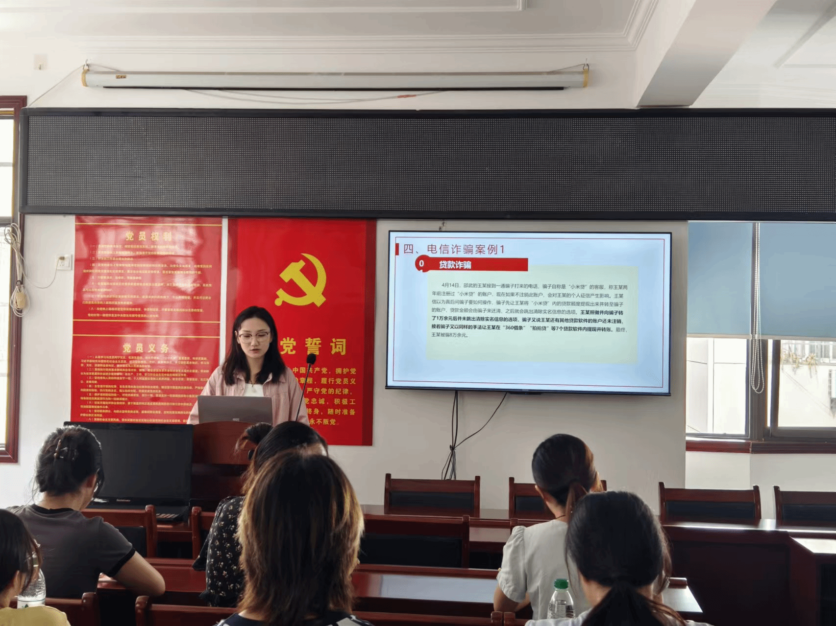 在北华社区活动中心,研究生姜璐以普法小课堂的形式向社区工作者讲述常见的法律知识,分别从民法典的颁布、民法典的构成和案例展示三个方面进行讲解,以通俗易懂的方式引导居民们进一步了解民法典及其应用,深入浅出地讲解了民法典中关于物权、合同、婚姻家庭、继承等方面的重要条款,使居民们对这部与生活息息相关的法律有了更为深刻的认识。她结合大量现实案例进行法案讲解,详细讲述了侵权责任、赡养老人、婚姻财产、电信诈骗等常见法律问题中的对应知识,并就常见的维权措施和途径进行了讲述,引导大家做一个学法、懂法、守法、用法的好公民。