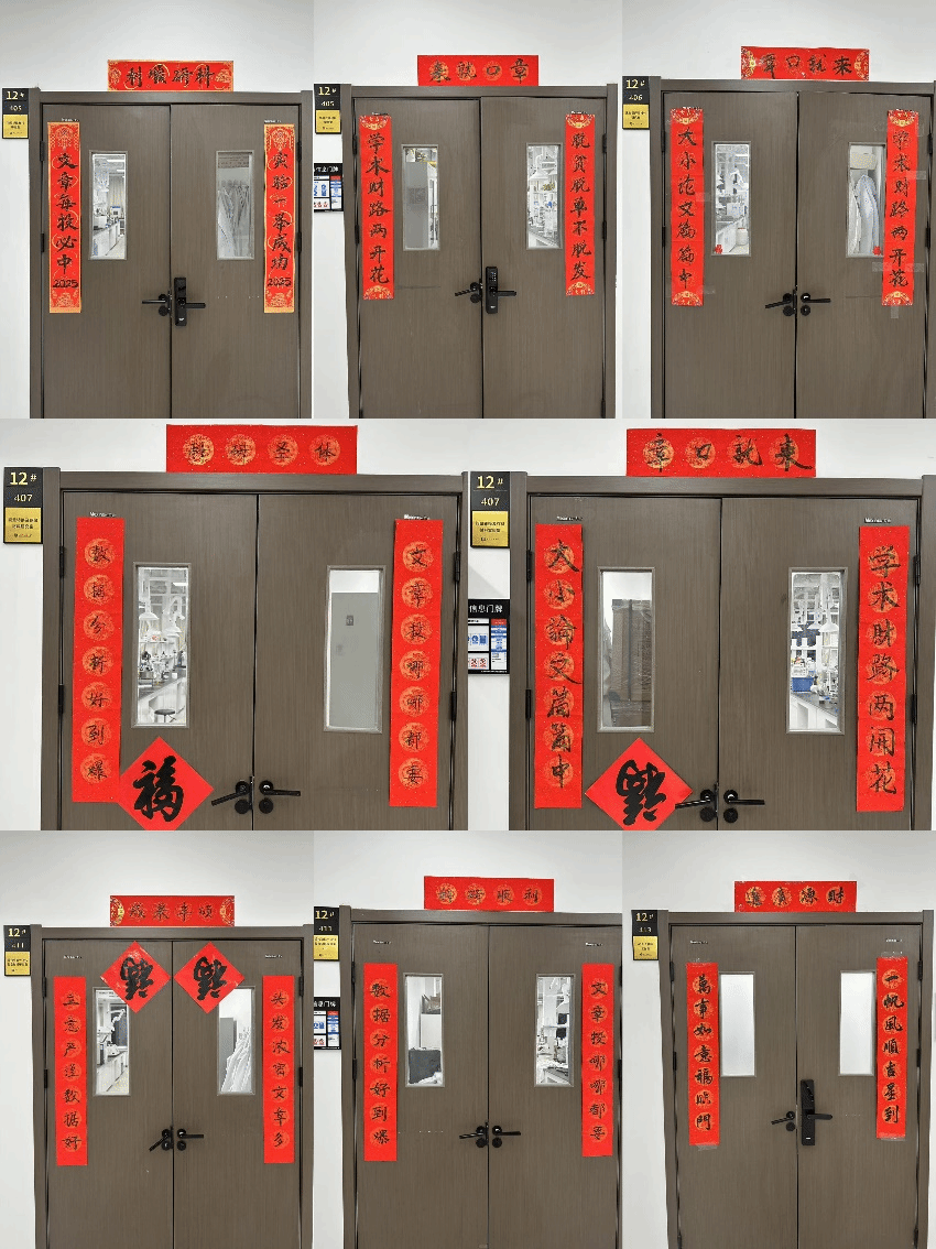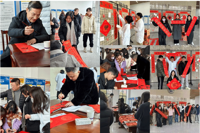 除此之外,此次活动还精心筹备了诸多礼品赠予参与师生。购置的明信片上印制着新年祝福及精美涂鸦,其寓意在于将学院的美好祈愿传递至每一位师生心间;棒棒糖则蕴含着对新的一年中,所有人的生活与事业皆能如蜜般甜蜜、似竹般节节高升的殷切期望。这些看似简约的小礼品,实则满载着学院对师生的深切关怀与诚挚祝福,使师生们于参与活动之际,能够深切体悟到源自学院的融融暖意。同学们现场挥毫书写明信片与春联,而后满怀热忱地张贴于各自的实验室及寝室门上,大家巧妙地运用传统文化元素精心装点属于自己的学习与生活空间,以此不断警示自己坚守初心,奋勇砥砺前行。