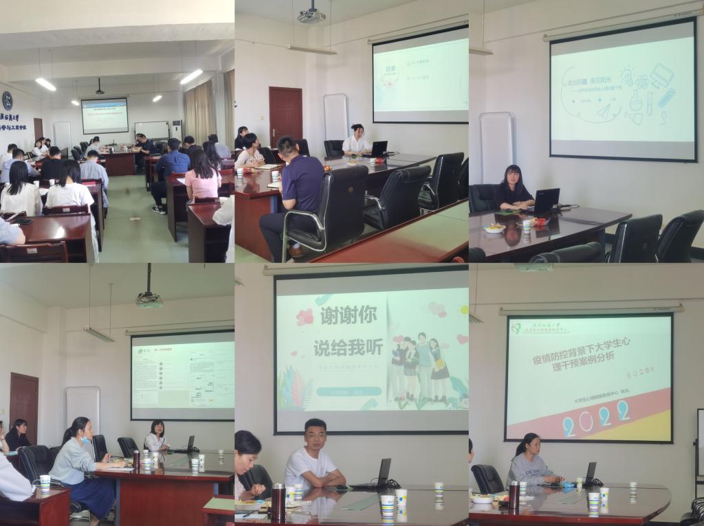 来自学工部心理健康教育中心以及纺织学院、机械学院、经济学院、williamhill的五位老师围绕“疫情之下的大学生心理干预案例分析”这一主题,结合心理问题干预案例展开分享。纺织学院吴童玲老师以《信心诚心耐心——从热搜事件谈学生思想引导工作》为题,从学校近期发生的热搜事件出发,详细讲述前因后果,分析危机处理的基本原则;williamhill王鑫老师以《走出阴霾重见阳光——优秀学生突发心理问题干预》为题,讲述疫情常态化管理中优秀学生突发心理问题的及时发现和精细干预案例;机械学院肖锦老师以《春风化雨,以爱育人——关注疫情之下特殊群体的心理健康》为题,重点分享跟问题学生发生冲突和有效化解的过程,认为疫情当下应该家长大学生思想教育,实时、动态掌握学生的情况;经济学院庞浡老师以《谢谢你说给我听——浅谈心理问题的及时介入》为题,分享了三个因为介入及时,学生心理问题得到很好解决的案例,认为辅导员是心理疏导的第一道阀门,但也会有因为无法发挥很大作用的无力感;大学生心理健康教育中心林凡老师以《疫情防控背景下大学生心理干预案例分析》为题,从近期处理的3个案例出发,分析此次案例分析的启示,运用马斯洛需求层次理论,分析目前学生在疫情之下的心理调适。