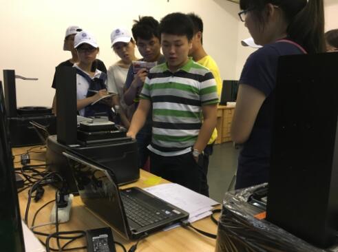 3D打印是快速成型技术的一种,它是一种以数字模型文件为基础,运用金属或塑料等可粘合材料,通过逐层打印的方式来构造物体的技术。在东莞智维立体成型有限公司的安排下,团队成员首先来到了3D打印室。技术负责人饶磊为我们讲解了多种不同的3D打印机的技术原理和主要用途,耐心细致地解答了我们的所有问题,并让我们了解了3D打印的局限性、现有市场、已及未来发展方向。他指出, 3D打印是一种十分个性化的技术,主要用于各种“私人订制”已及工厂较复杂模型的建模,短期内较难实现3D打印技术的普及化,但是随着3D打印技术的不断发展与成本的降低,3D打印技术走入千家万户不无可能。