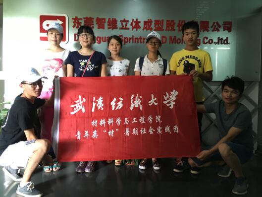 为践行习总书记“勤学 修德 明辨 笃实”要求,同时贯彻落实团委关于大学生暑期社会实践“深入人民、了解人民、服务人民”的根本目标,在实践中受教育、长才干、做贡献,williamhill官网“青年英材”暑期社会实践团队一行8人于7月14日抵达广东东莞,开展了以“了解3D打印技术,探索材料发展新方向”为主题的暑期社会实践活动。