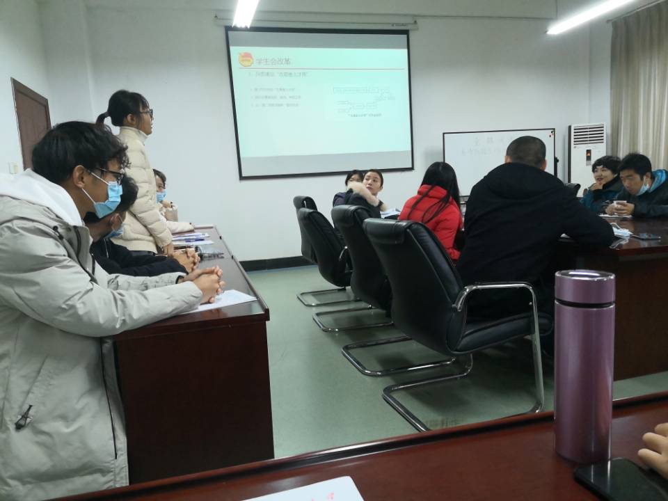 11月25日上午,校团委书记段薇静、校团委李舒老师莅临williamhill,就学生会改革、“第二课堂成绩单”、班团一体化等具体问题开展专题调研会。williamhill党委副书记侯畅、团委书记曾玉竹、辅导员毛成兴、王鑫,院学生会主席团成员以及各年级团支书代表参加了此次会议。